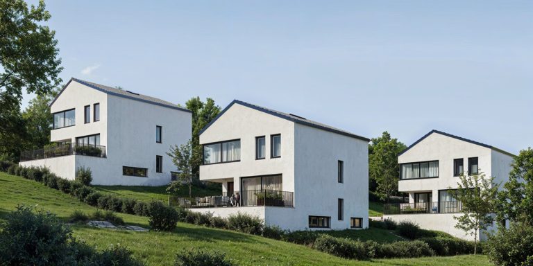 Mit 6 Einfamilienhäusern mit Netto Wohnflächen von 164 bis 173 m2 und anteiligem Grundstück von 344 bis 422 m2 heissen wir Sie willkommen in ihr neues, hochwertiges und grosszügig geschnittenes Zuhause zentral vor der Gemeindehalle und Primarschule von Blauen.